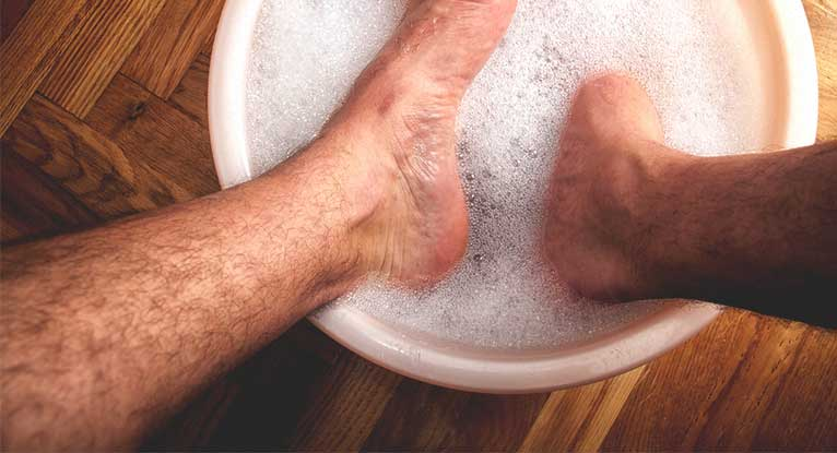 Reduce swelling and discomfort by giving the affected foot three 20-minute soaks in warm, soapy water each day.